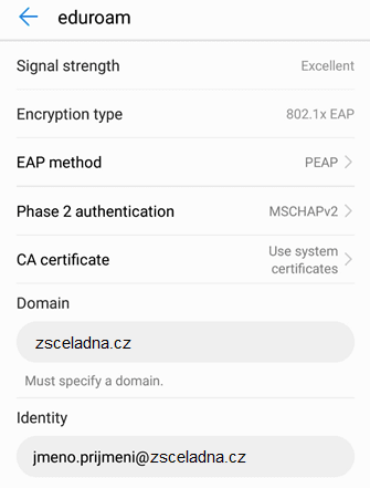 Připravené připojení pro uživatele z instituce Základní škola Čeladná, Čeladná 551 naleznete na adrese: https://cat.eduroam.org